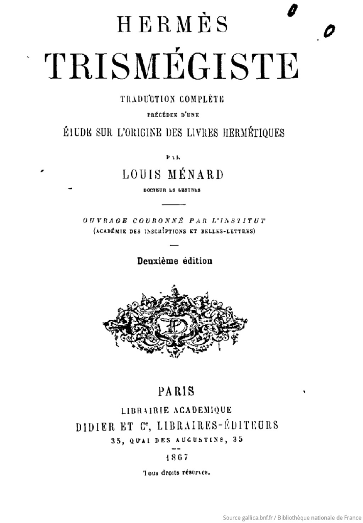 De savans travaux ont été publiés sur la grande école philosophique d’Alexandrie. On a également étudié des ouvrages très divers qui peuvent éclairer l’histoire des origines chrétiennes, par exemple les fragmens de la polémique de Celse et de l’empereur Julien contre le christianisme, les livres de Philon, la vie d’Apollonius de Tyane par Philostrate. Enfin un savant commentaire a fixé la date des différentes séries des oracles sibyllins, œuvre en partie juive, en partie chrétienne, dont les apologistes chrétiens, dupes eux-mêmes de la fraude de leurs devanciers, invoquent très souvent le témoignage pour convaincre les païens de la vérité du christianisme. Il y a d’autres ouvrages apocryphes, d’un caractère tout différent, qui jouissaient auprès des pères de l’église d’une autorité au moins égale à celle des oracles sibyllins, et qui pourtant laissent encore aux érudits comme aux penseurs plus d’une question à résoudre : ce sont les livres qui portent le nom d’Hermès Trismégiste. Marsile Ficin, Patrizzi et les autres érudits de la renaissance qui ont traduit ou commenté ces livres n’hésitaient pas à les présenter, conformément à l’opinion de Lactance et d’autres docteurs de l’église chrétienne, comme des monumens de l’antique théologie des Égyptiens. On regardait alors Hermès comme une sorte de révélateur inspiré, un peu antérieur à Moïse, et ses écrits comme la source première des initiations orphiques, de la philosophie de Pythagore et de celle de Platon. Des doutes néanmoins ne tardèrent pas à s’élever, et les progrès de la critique firent classer les livres hermétiques parmi les dernières productions de la philosophie grecque. Casaubon les attribua même à un juif ou à un chrétien. L’auteur du Panthéon Ægyptiorum, Jablonski, crut y reconnaître l’œuvre d’un gnostique. Enfin Creuzer et son savant traducteur, M. Guigniaut, inclinent à penser qu’au milieu des idées alexandrines qui forment le fond des livres hermétiques on peut trouver quelques traces des dogmes religieux de l’ancienne Égypte.