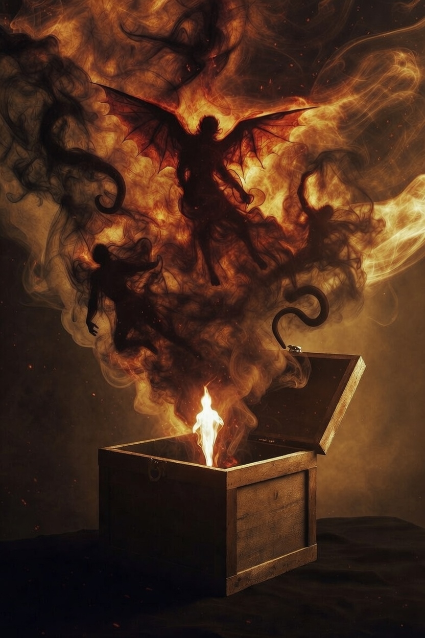 La légende de Pandora, sur ce point, fait plus qu’enseigner la prudence. Son nom grec signifie « dotée de tous les dons ». Sa généalogie, pour partie racontée par Hésiode, impressionne : première femme d’espèce humaine, c’est-à-dire, à l’inverse des dieux, d’espèce mortelle, elle fut façonnée par Héphaïstos, animée par Athéna qui lui donna la vie et la vêtit, puis elle fut apprêtée de toutes les grâces par Aphrodite, instruite par Apollon de ce qu’il en est de la musique, et par Hermès éduquée à la méfiance et à la perfidie. Nantie d’une étrange jarre au contenu inconnu, remise par Zeus avec mission de la tenir fermée, Pandora fut présentée par le maître de l’Olympe au Titan Épiméthée — frère de Prométhée qui avait donné le feu aux humains —, lequel tomba sous le charme et l’accueillit chez lui.